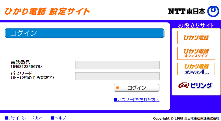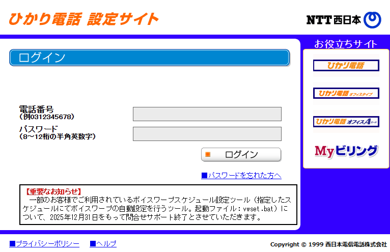 NTT西日本・東日本のそれぞれの設定サイトは以下の URL からアクセスします。