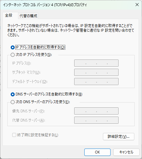 ※初期設定は両方自動取得です。