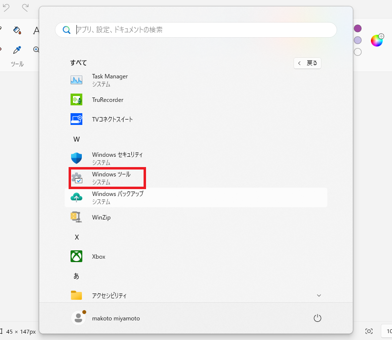 「 W 」の欄の「 Windowsツール 」をクリックします。