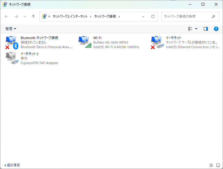 「 ネットワーク接続 」のウィンドウが開きます。