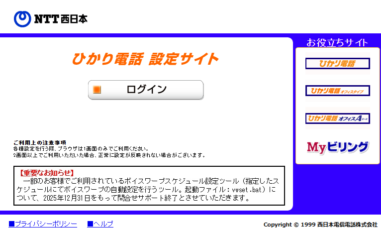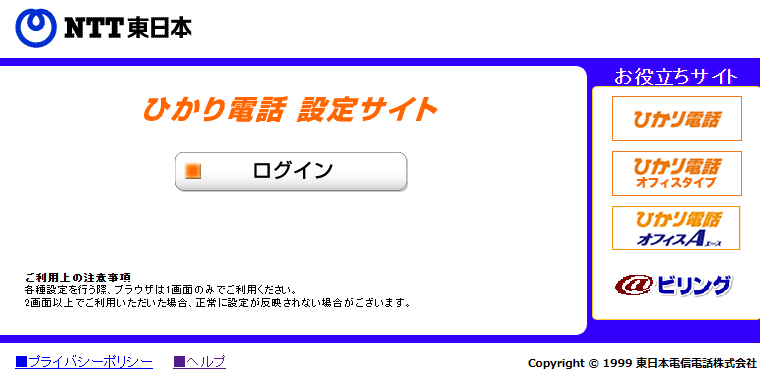 NTT西日本・東日本のそれぞれの設定サイトは以下の URL からアクセスします。