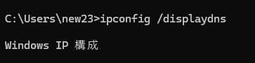 キャッシュが削除されたかを調べるには、「 ipconfig /displaydns 」を実行し、何も表示されなければキャッシュはクリアされています。