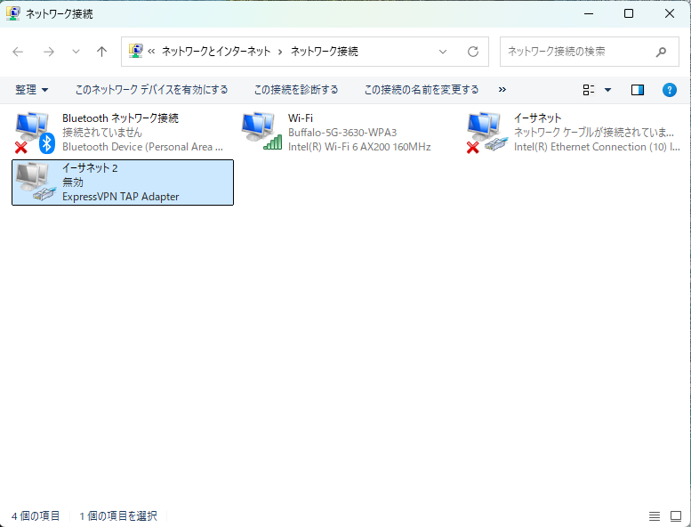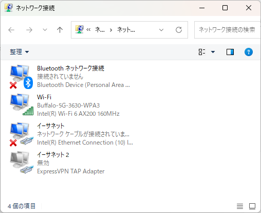 「 ネットワーク接続 」のウィンドウが開きます。