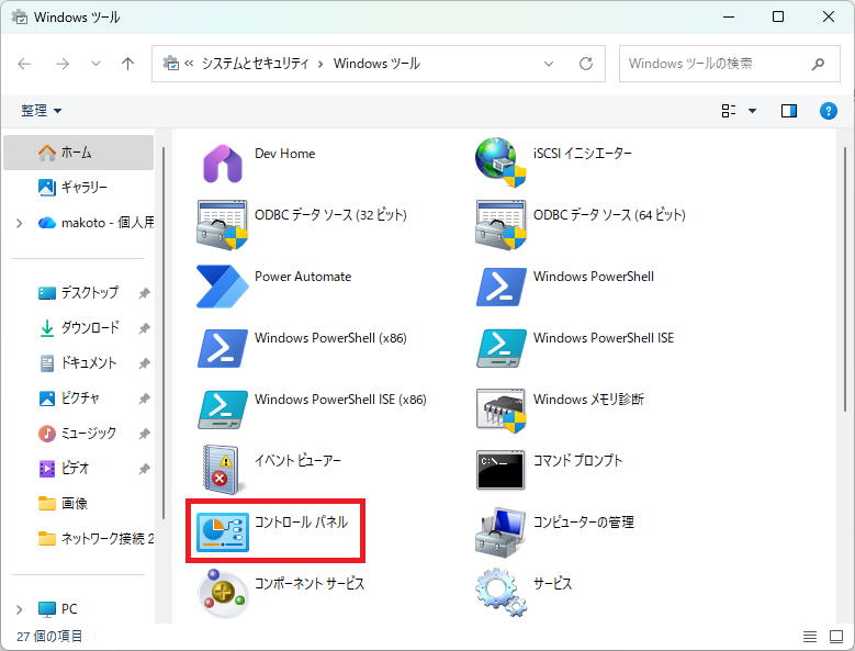 「 コントロールパネル 」をクリックします。